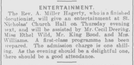 Rev Hagerty – a “finished elocutionist” in Australia in 1913